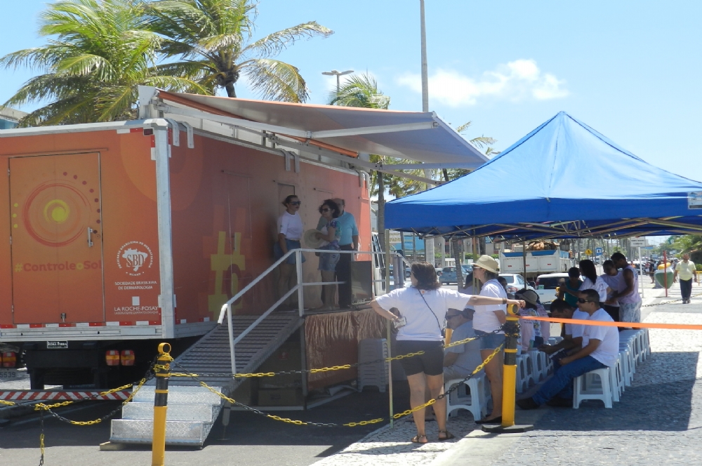 Banhistas que passaram na Orla de Atalaia neste domingo, 21, tiveram a oportunidade de realizar exames gratuitos para a detecção do câncer de pele. A iniciativa é da Sociedade Brasileira de Dermatologia em parceria com o laboratório La Roche Posay, que trouxe para Sergipe um caminhão itinerante equipado com dois consultórios e profissionais para orientar a população sobre os riscos da exposição solar e os cuidados na prevenção do câncer de pele.
