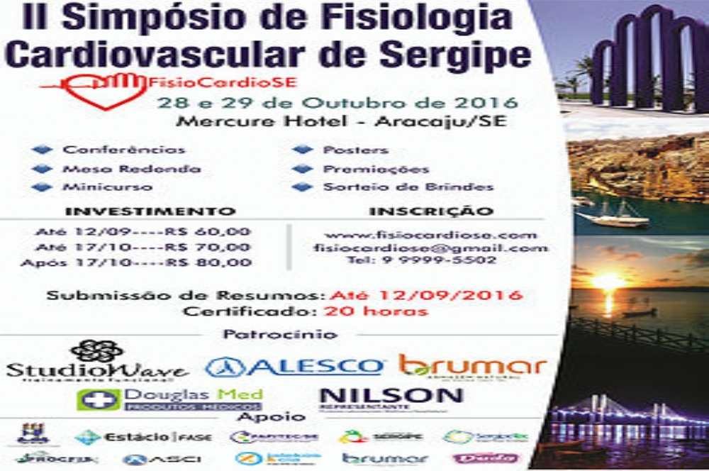 Para realizar as inscrições e obter mais informações, os interessados devem acessar o site www.fisiocardiose.com, fisiocardiose@gmail.com e (79) 9.9999.5502 (whatsapp também).