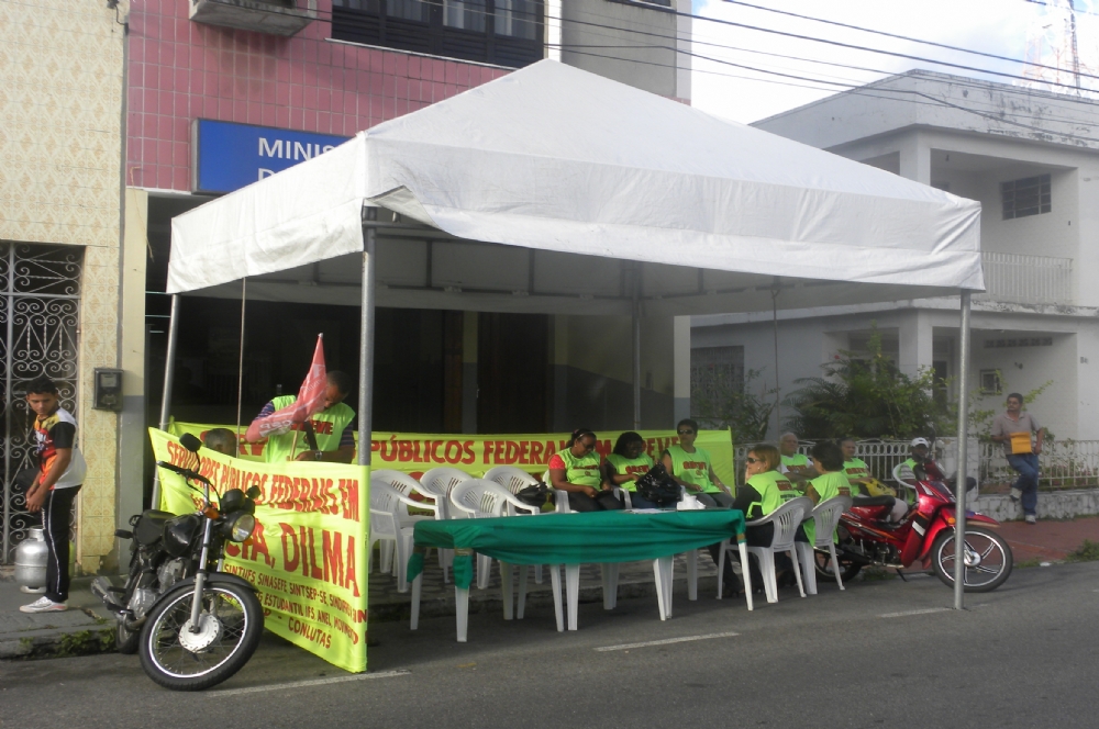 Os servidores federais da saúde em Sergipe e da Fundação Nacional da Saúde (Funasa) montaram uma tenda em frente ao Ministério da Saúde na manhã desta sexta-feira, 17, para bloquear a entrada dos funcionários federais que não aderiram a greve. O ato tem por objetivo protestar sobre a decisão do corte de ponto dos servidores do Governo Federal.