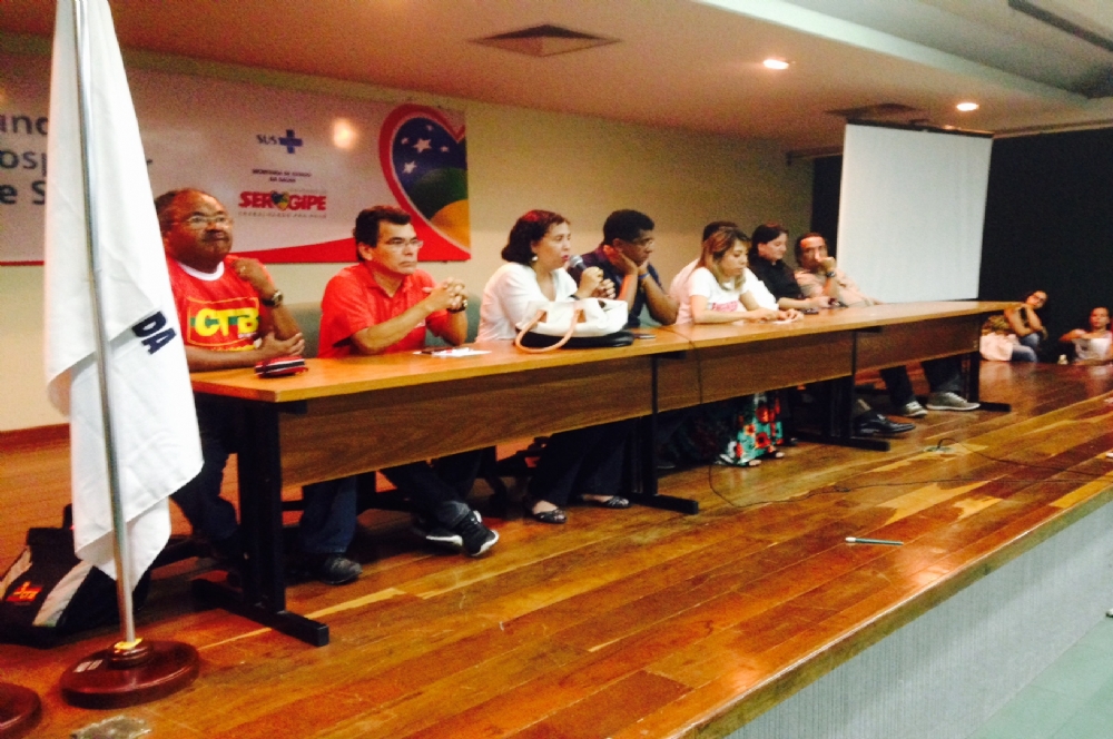 Representantes de sindicatos da saúde, à exceção do Sindicato dos Médicos (Sindimed) estão reunidos no auditório do Hospital de Urgência de Sergipe (Huse). O encontro tem por finalidade, levar aos servidores, os resultados das reuniões entre sindicalistas e representantes da Secretaria de Estado da Saúde (SES) e do Ministério Público Federal (MPF).
