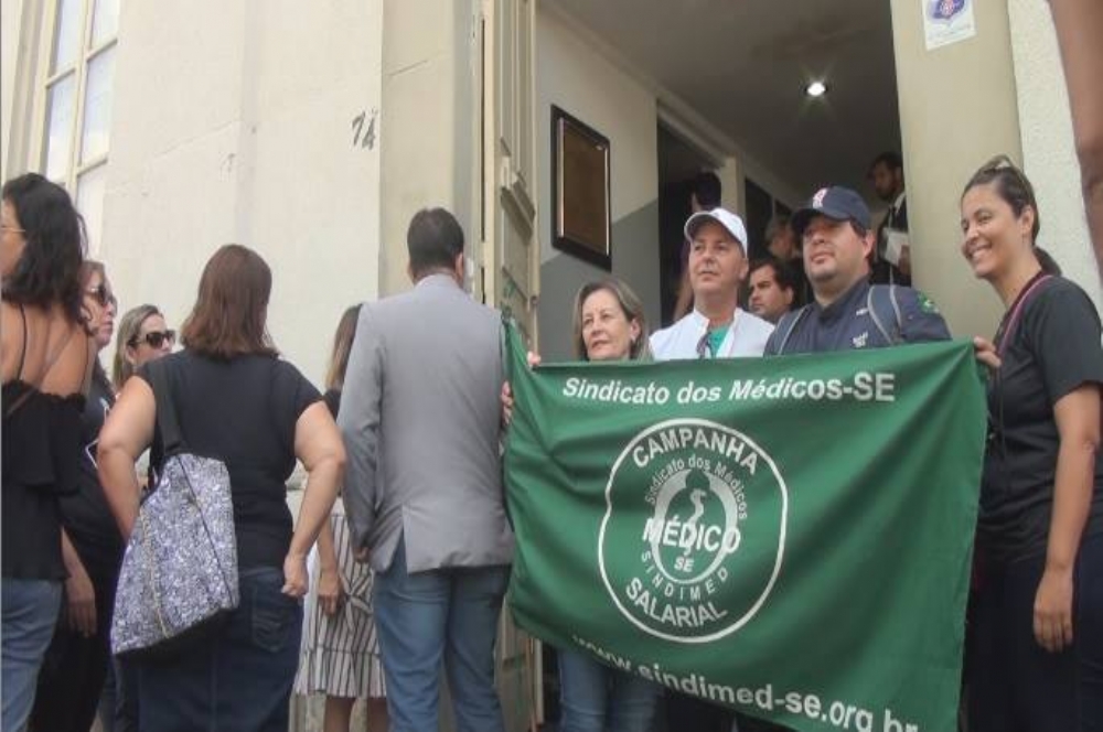 A entrada da Câmara Municipal de Aracaju ficou tomada por servidores da saúde na manhã desta quinta-feira, 16. Os manifestantes aproveitaram o segundo dia de atividades na casa parlamentar para pedir a votação de um projeto que reduza o parcelamento dos salários de dezembro de doze para quatro parcelas. Segundo o Sindicato dos Médicos, a emenda já está em posse dos vereadores, e os servidores aguardam agora entrar em pauta.