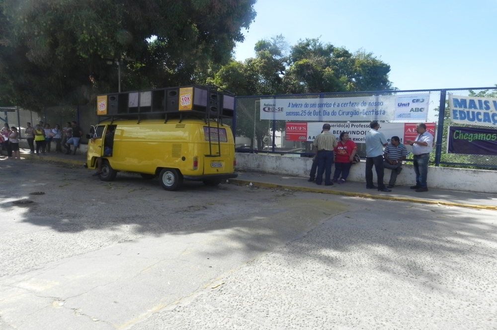 | Faixas e um carro de som reforçaram as reivindicações da categoria |