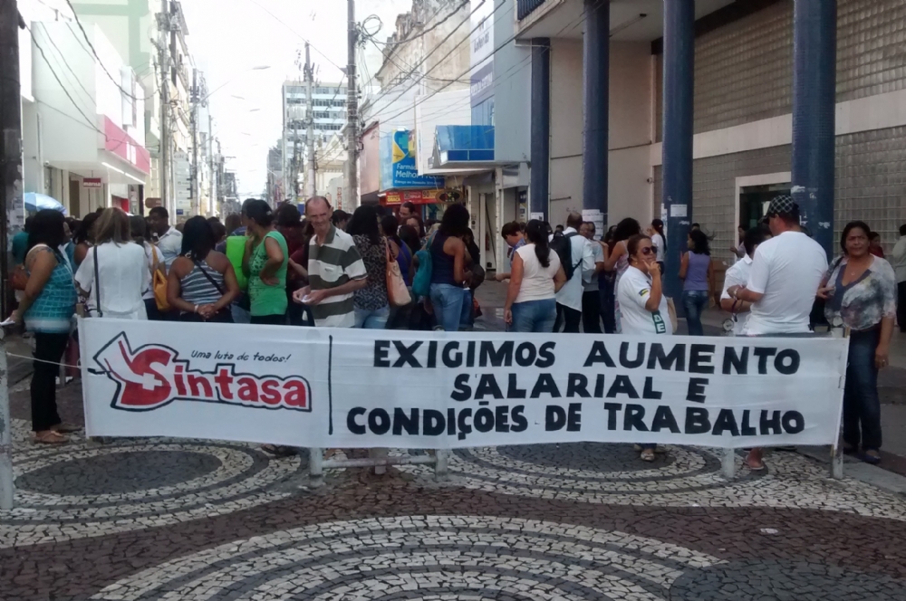 | Ato seguido de assembleia no Calçadão da rua João Pessoa (Foto: Andréa Oliveira) |