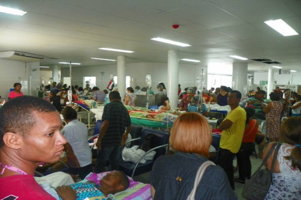 Entre as irregularidades encontradas, destaca-se a superlotação na área “azul” do hospital, na qual a Comissão presenciou um paciente recebendo soroterapia em pé, fora do local adequado. Além disso, havia pacientes e acompanhantes amontoados no mesmo local.