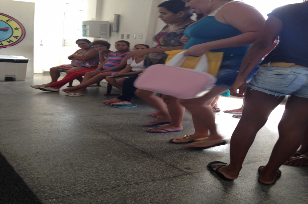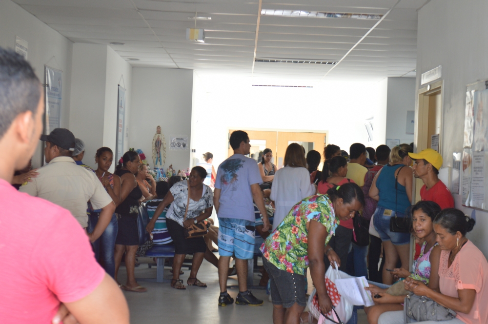 | Recepção da Maternidade Nossa Senhora de Lourdes lotada |