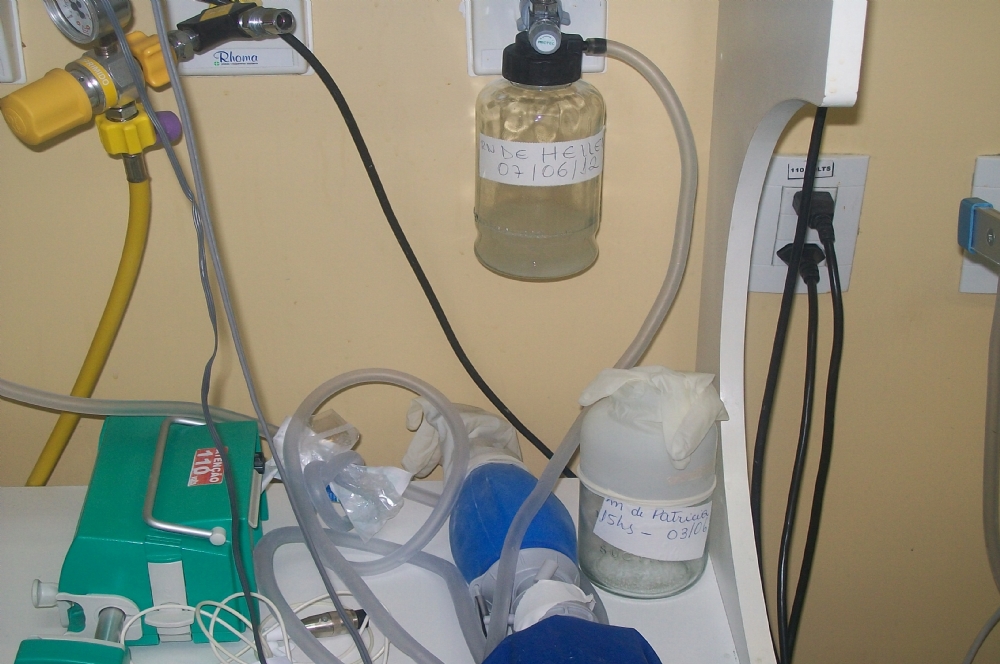 | Oxigênio utilizado no chão por falta de local na parede |