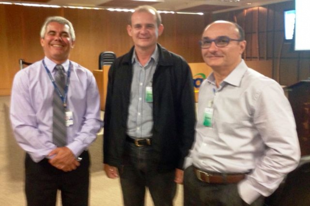 | Auditor do TCU, Renato Braga, o analista de controle externo II, Sérgio Augusto e o conselheiro substituto Francisco Evanildo (Foto: TCE) |