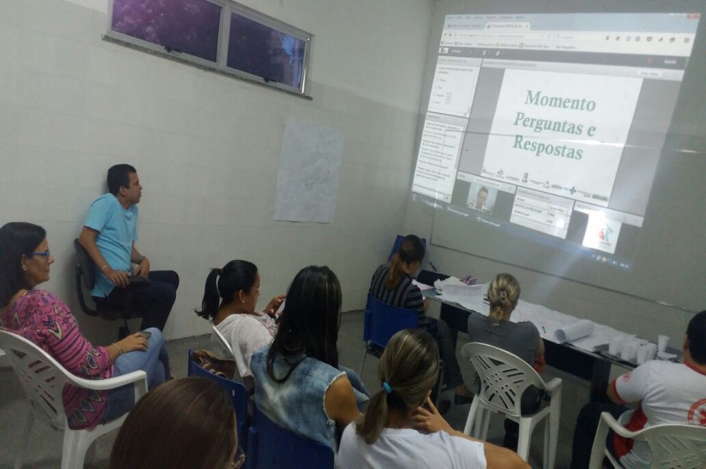 Tele-educação: uma forma de ensino que possibilita a aprendizagem à distância, com a utilização da tecnologia. Acontece no Estado através de webpalestras realizadas por profissionais, referências técnicas e/ou especialistas em áreas temáticas da saúde, trazendo para discussão temas pertinentes à APS de maior interesse em Sergipe. Até o momento, foram realizadas 17 webpalestras, desde dezembro de 2014.