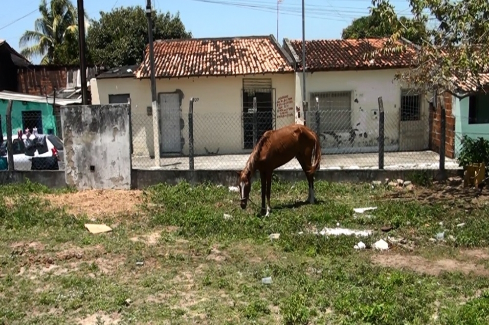 A equipe do Portal também flagrou um cavalo dentro da área da Unidade. O animal estava amarrado a uma árvore e se alimentava da vegetação. Ali mesmo deixava seus dejetos.