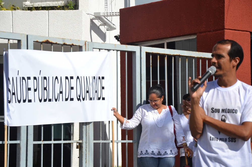 | Médicos se concentram em frente à SMS (Fotos: Portal Infonet) |
