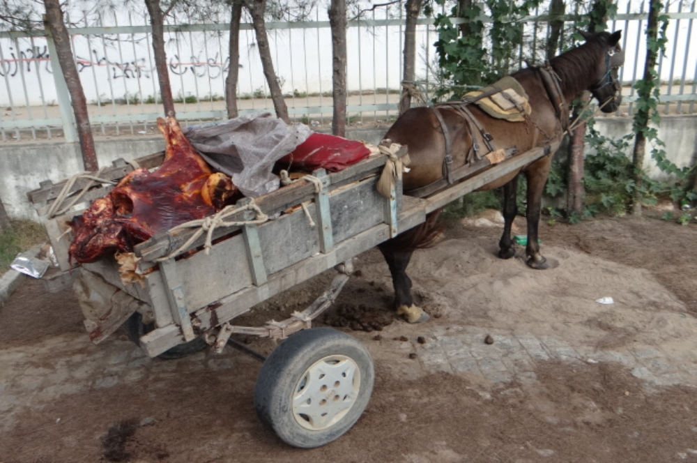 | Carne estava sendo transportada nesta carroça (Fotos: SMS) |