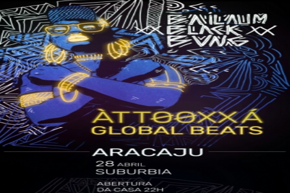No dia 28 de abril, sábado, o grupo baiano ÀTTØØXXÁ promove o Bailaum #BLVCKBVNG (leia Black Bang), no Suburbia, a partir das 22h. O Global Beats completa o evento que não vai deixar ninguém parado.