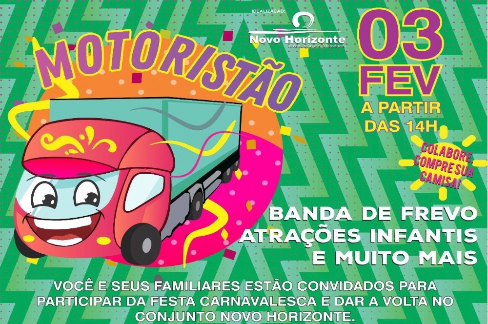 Segundo informações de Adriano Bandeira, presidente da Associação de Moradores do Conjunto dos Motoristas, a ideia é aproveitar a folia sem esquecer de fazer o bem ao próximo. “Essa é a terceira edição da nossa festa, que contará com atrações musicais voltadas para o frevo e o samba, além de brinquedos, pipoca e algodão doce para animar a criançada. Nosso bloco de rua é sempre marcado pela tranquilidade e clima familiar. Além da festa, escolhemos a Casa de Apoio 'O Bom Samaritano' para beneficiar com latas de leite em pó e fraldas geriátricas para adulto que serão doadas pelos próprios foliões. Estaremos brincando sem esquecer da responsabilidade social que nosso bloquinho pode ter nesse contexto de carnaval”, destacou.