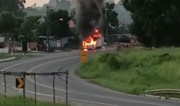 fogo no km 32 da BR-235 em Areia Branca, na manhã desta sexta-feira, 12. A informação foi confirmada pela Polícia Rodoviária Federal (PRF).