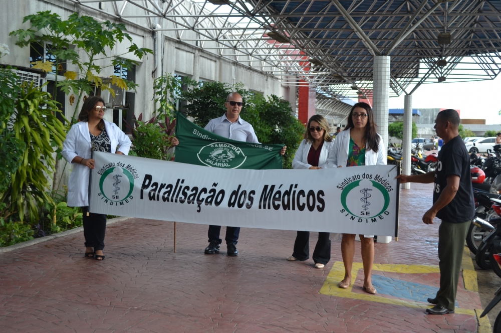 Pela segunda vez, médicos cirurgiões plásticos do Hospital de Urgência de Sergipe (Huse) realizaram um ato na unidade e paralisaram as atividades por 24h. A categoria pleiteia isonomia salarial com cirurgiões gerais.