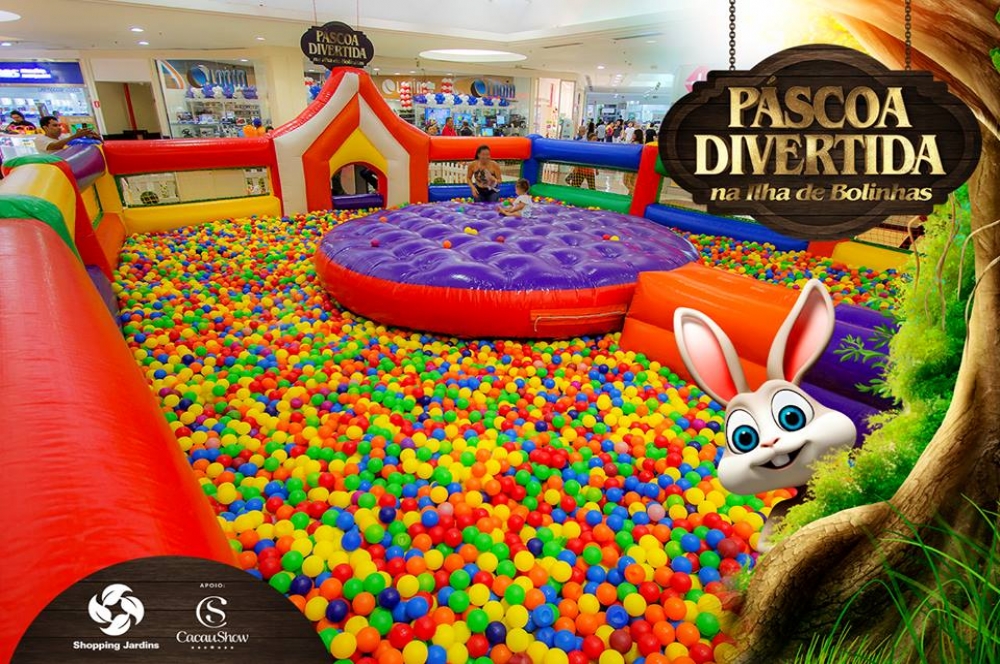 O quê? Programação especial com caça aos ovos, pintura facial e distribuição de orelhinhas de coelho, no brinquedão inflável com pula-pula e piscina de bolinhas.