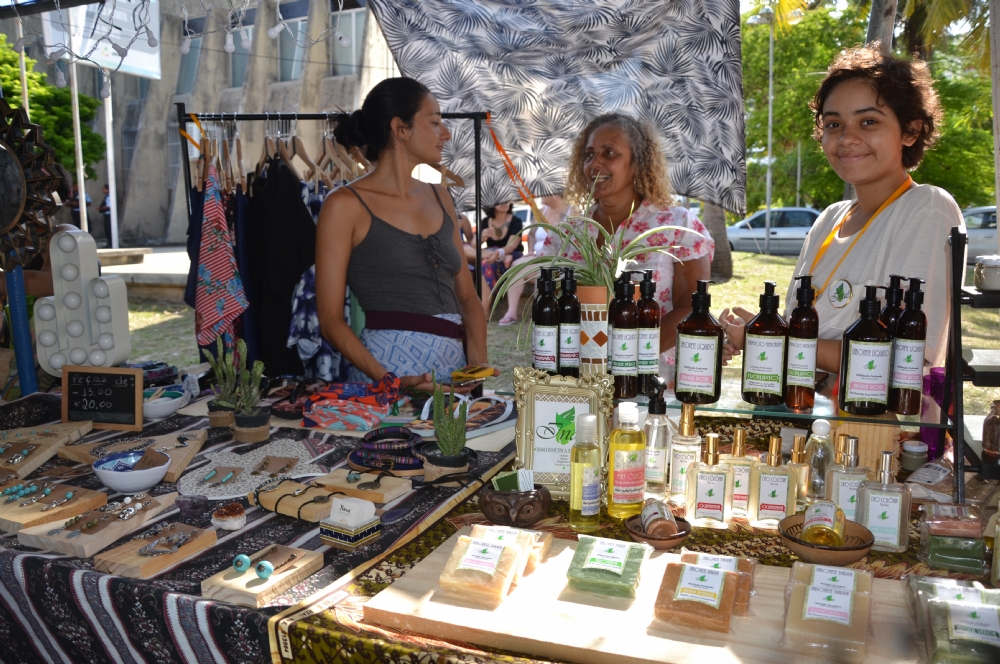 Do outro lado, os expositores explicavam a origem dos produtos comercializados naquele festival. “Sou eu quem planta as ervas. São produtos orgânicos e cada item tem a sua utilidade”, explica a empreendedora Gabriela Amorim, apresentando a diversidade dos produtos, que tem origem na Chapada Diamantina, no Estado da Bahia, onde reside. “Nossa proposta é trazer estes produtos naturais produzidos na Chapada como tintura medicinal, manteiga vegana [vegetal], cigarros feitos com ervas medicinais, café orgânico…”, comenta a empreendedora. “Aqui todos os nossos produtos são autorais”, resume Naná Oliveira. “E aqui nós temos óleos para massagem, perfumes, argila para rosto, sais de banho. É a natureza ajudando de várias formas”, diz Stephane Chagas.