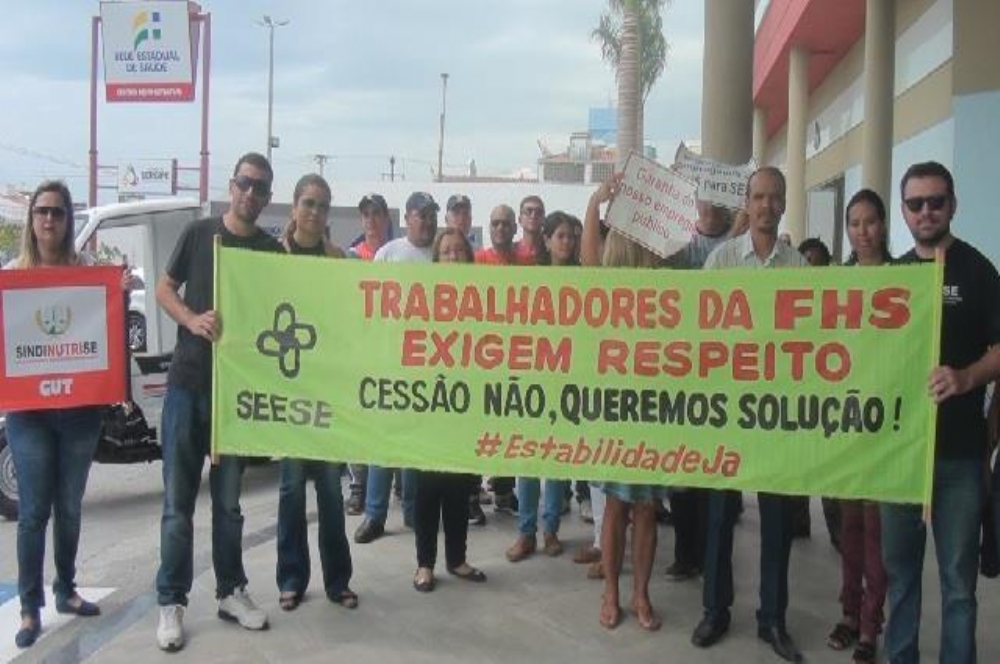A inauguração do novo Centro Administrativo da Saúde de Sergipe foi marcado pela presença de autoridades como o Governador do Estado. Mas a solenidade também teve ato dos servidores da Fundação Hospitalar de Saúde (FHS), que cobram uma definição para os servidores que estão no centro do distrato de contrato entre Governo e FHS. O governador garantiu que não vai demitir os servidores.
