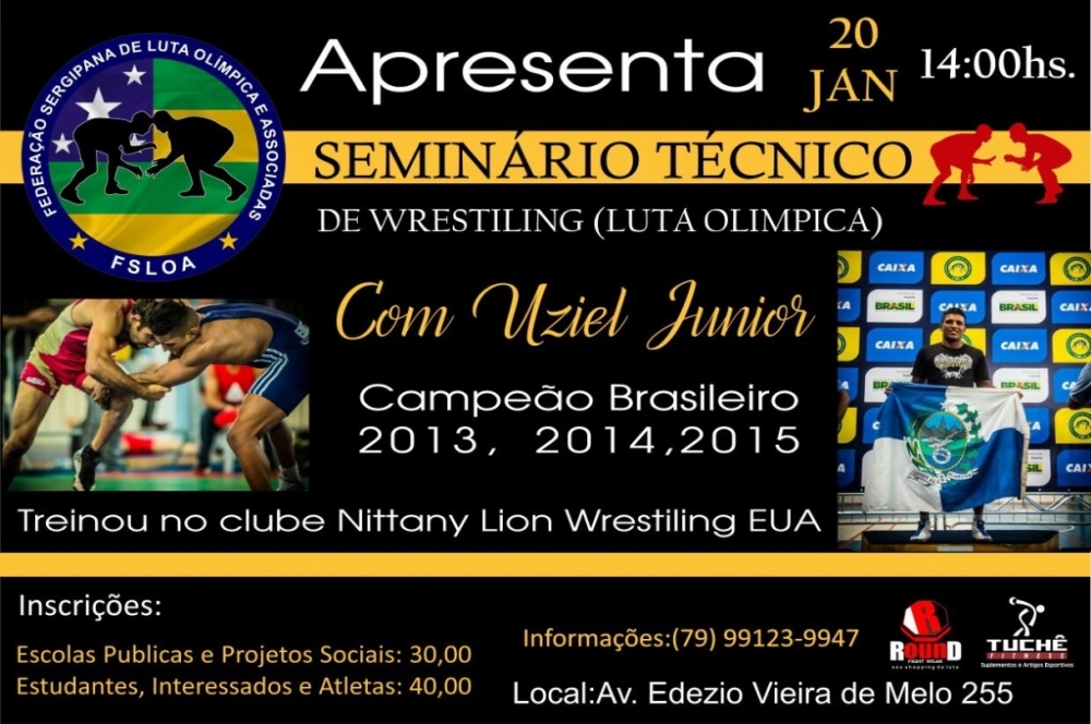Neste sábado, 20, a partir das 14h, será realizado em Aracaju um seminário técnico de Luta Olímpica/ Wrestling com o sergipano Uziel Junior, tricampeão brasileiro e com experiência em centros de treinamento de fora do país. O evento será realizado no CT Luciano Vieira, localizado na avenida Edézio Vieira de Melo 255.
