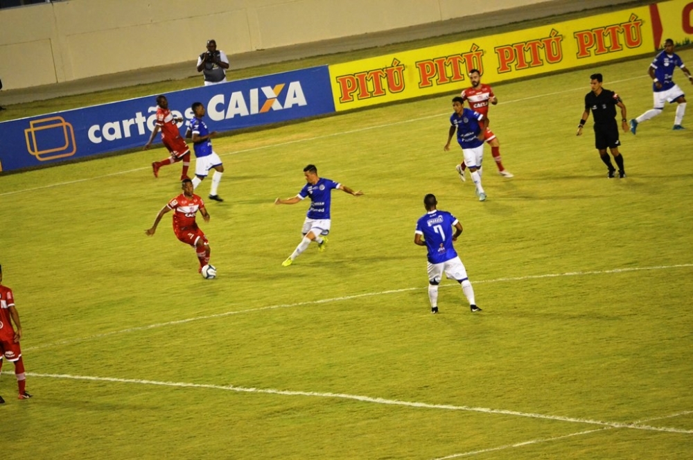 Mas o principal lance do primeiro tempo seria aos 29. Após cruzamento de Arlan, Frontini chutou com tudo e parou no goleiro. No rebote, Arlan não conseguiu alcançar a bola e a deixou sair. O CRB só foi responder à altura aos 43, quando Juninho mandou a bola à direita do gol com perigo.