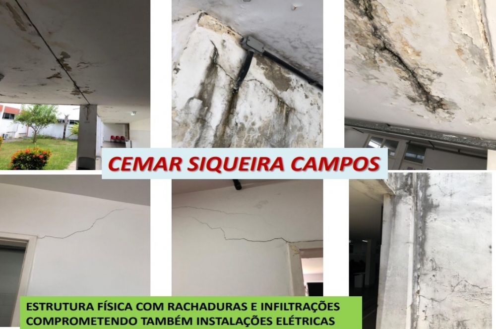 Piscina sem uso por falta de adequações para as atividades de reabilitação, infiltrações, rachaduras, salas interditadas por falta de aparelhos de ar condicionado e equipamentos danificados. Esta é a realidade do Centro de Especialidades Médicas (Cemar) do Siqueira Campos, mantido pela Prefeitura de Aracaju para garantir o atendimento à saúde da população de Sergipe. Estas condições estão apontadas em dossiê elaborado pelo Sindicato dos Médicos de Sergipe (Sindimed), contendo 62 páginas, cujas cópias foram entregues pelas lideranças sindicais a 16 entidades, incluindo o prefeito Edvaldo Nogueira (PC do B) e órgãos fiscalizadores da gestão pública, a exemplo do Ministério Público Federal e Estadual, Corpo de Bombeiros e Tribunal de Contas do Estado.
