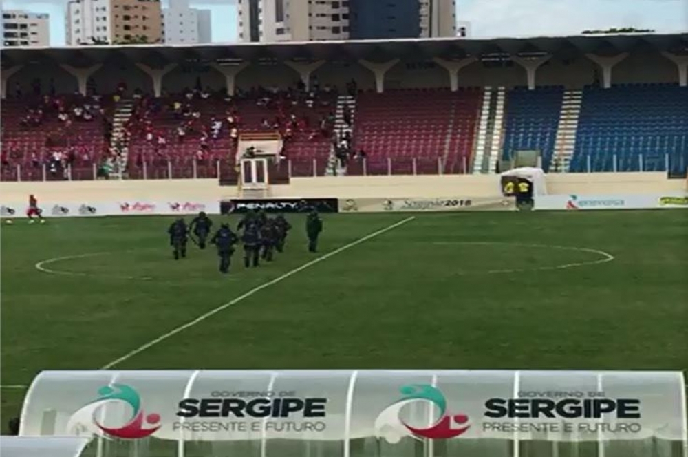 De acordo com o tenente-coronel Rollemberg, comandante do Batalhão de Radiopatrulha e que participou do policiamento da partida, uma torcida organizada do Sergipe tentou romper o isolamento divisório entre as torcidas. “Algumas pessoas queriam passar a barreira de seguranças privados para entrar em confronto com a outra torcida. Prontamente a polícia interviu e evitou o conflito”, explicou Rollemberg.